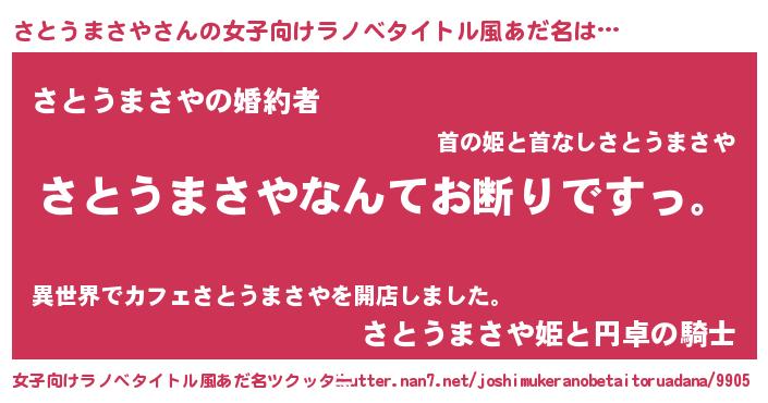 | 男性向けラノベタイトル風あだ名 | 『魔法科高校のさとうまさや』 |