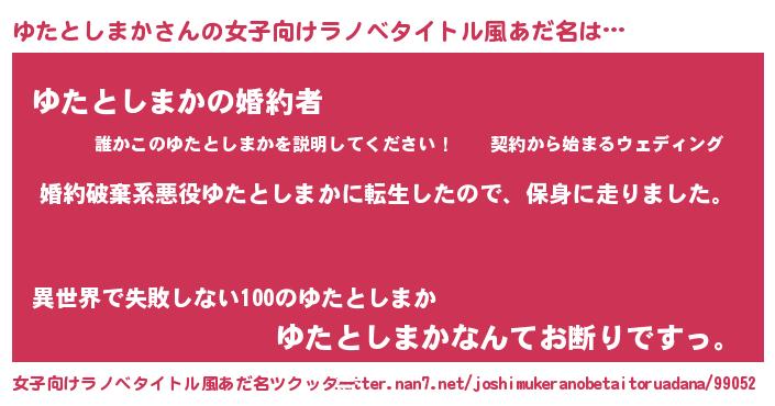 | 男性向けラノベタイトル風あだ名 | 『ユタトシマカスレイヤー』 |