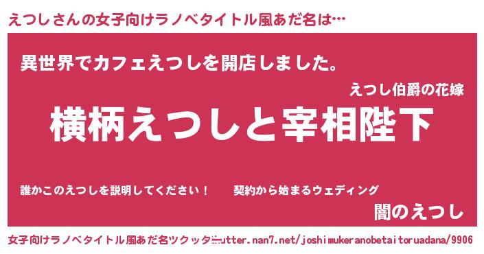 | 男性向けラノベタイトル風あだ名 | 『えつしに滅ぼされるだけの簡単なお仕事です』 |