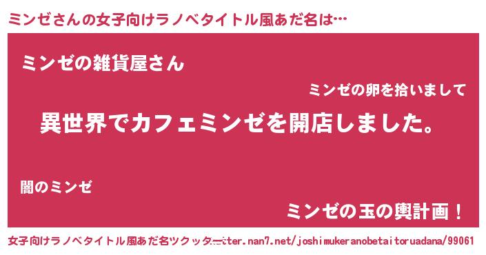 | ファンタジー風あだ名 | 『ミンディッシュ』『エターナルミンゼー』 |