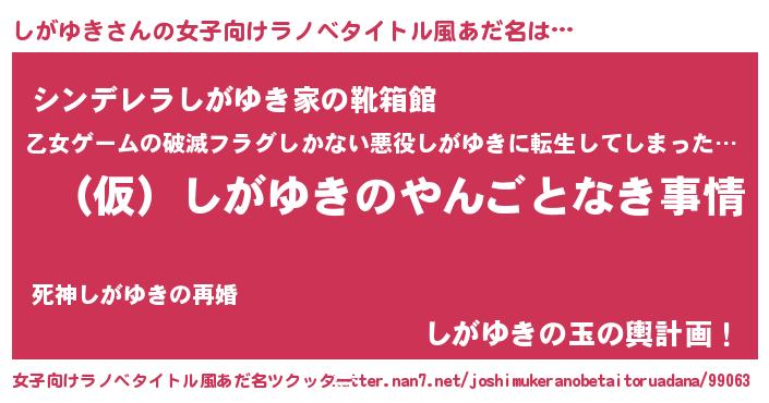 | 胡散臭い通販商品みたいなあだ名 | 『必ず成功する霊験あらたかなお札…その名も「しがゆき」』 |