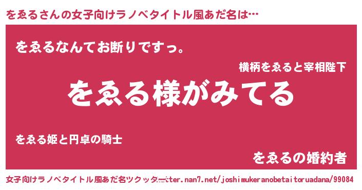 | 男性向けラノベタイトル風あだ名 | 『をゑるの嫁は女の子じゃないと思った?』 |