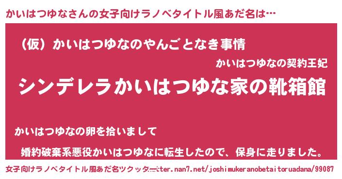 | 胡散臭い通販商品みたいなあだ名 | 『必ず成功する霊験あらたかなお札…その名も「かいはつゆな」』 |