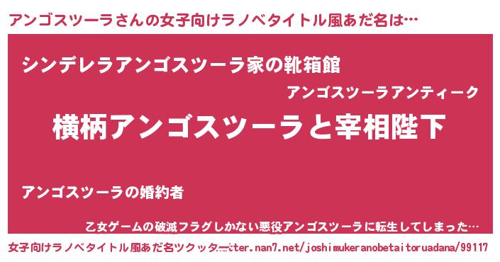 | 男性向けラノベタイトル風あだ名 | 『アンゴスツーラに滅ぼされるだけの簡単なお仕事です』 |