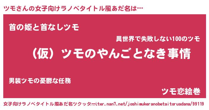 | 男性向けラノベタイトル風あだ名 | 『ツモの憂鬱』『はたらくツモさま!』 |