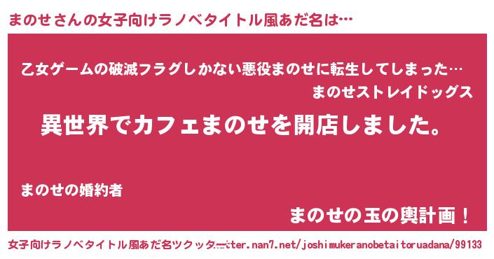 | 男性向けラノベタイトル風あだ名 | 『誰もが恐れるあのまのせが、ぼくの専属メイドになるようです。』 |