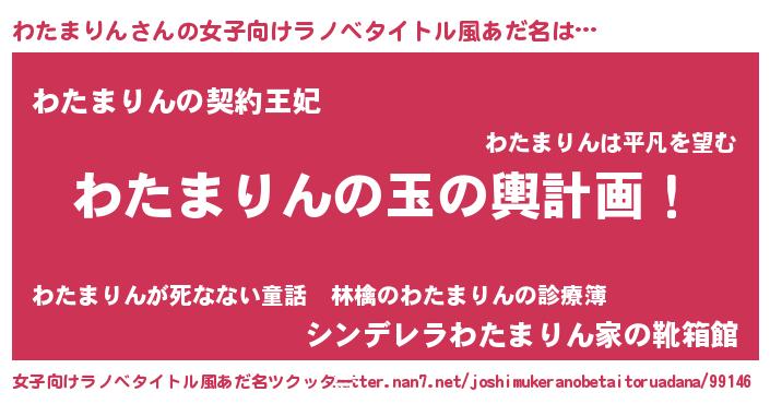 | 男性向けラノベタイトル風あだ名 | 『わたまりん~年齢イコール彼女いない歴の魔法使い~』 |