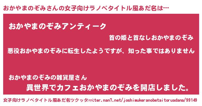 | ヘコむあだ名 | 『おかやまのぞみ(爆)』『牛乳』 |