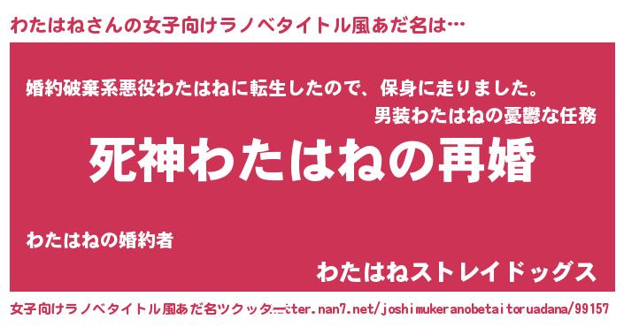 | 男性向けラノベタイトル風あだ名 | 『ノーゲーム・ノーワタハネ』 |