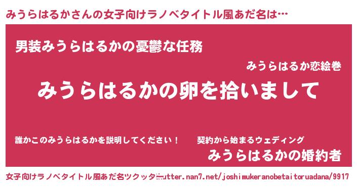 | ポケモン風あだ名 | 『ヒミウラハルカ』『メロミッウ』 |