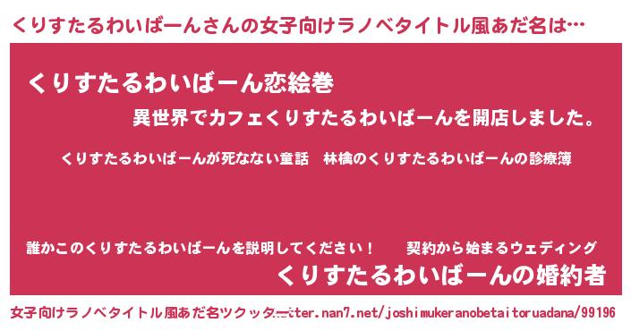 | 意味不明あだ名 | 『住所不定無職くりすたるわいばーん(43歳)』 |