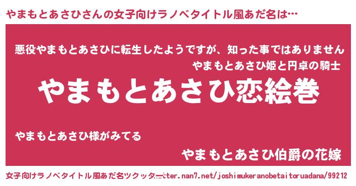 | 男性向けラノベタイトル風あだ名 | 『ノーゲーム・ノーヤマモトアサヒ』 |