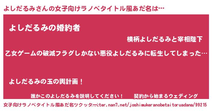 | 男性向けラノベタイトル風あだ名 | 『この素晴らしい世界によしだるみを!』 |