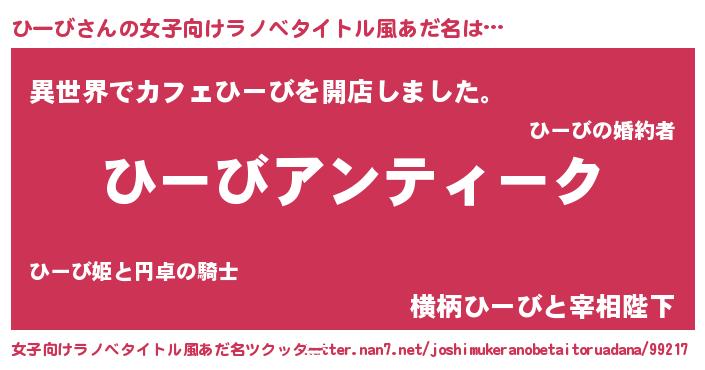 | 男性向けラノベタイトル風あだ名 | 『魔法科高校のひーび』『ひーびの憂鬱』 |