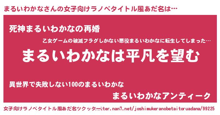 | 男性向けラノベタイトル風あだ名 | 『ダンジョンにまるいわかなを求めるのは間違っているだろうか』 |