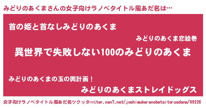 | 男性向けラノベタイトル風あだ名 | 『みどりのあくまという概念が存在しない退屈な世界 』 |
