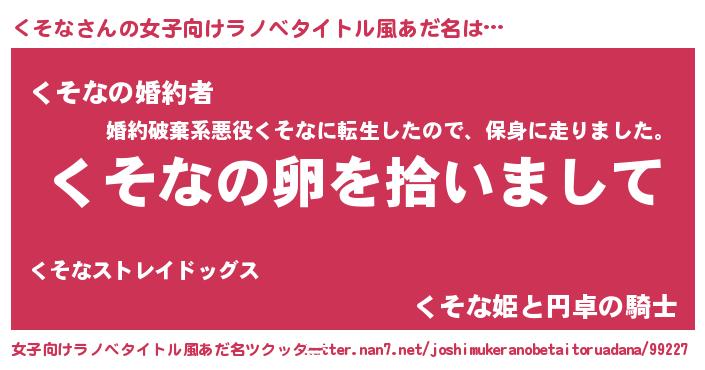 | 男性向けラノベタイトル風あだ名 | 『ダンジョンにくそなを求めるのは間違っているだろうか』 |