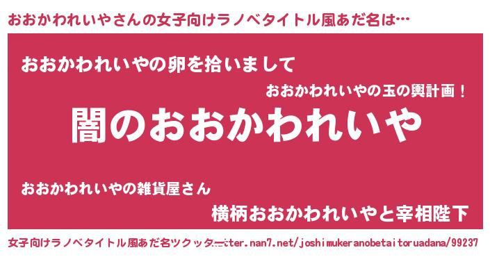 | 意味不明あだ名 | 『自称おおかわれいや』 |