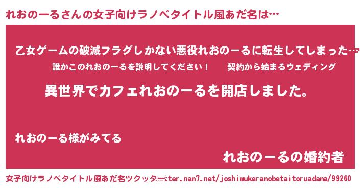 | 男性向けラノベタイトル風あだ名 | 『誰もが恐れるあのれおのーるが、ぼくの専属メイドになるようです。』 |