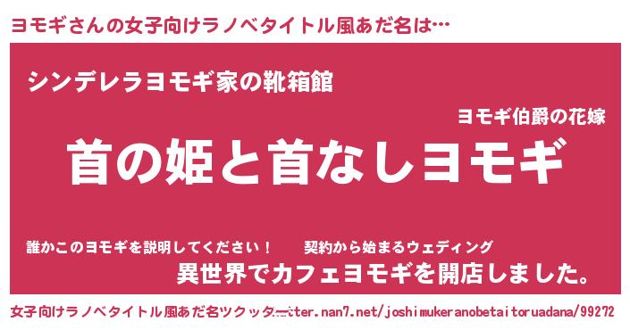 | 男性向けラノベタイトル風あだ名 | 『はたらくヨモギさま!』『緋弾のヨモギ』 |