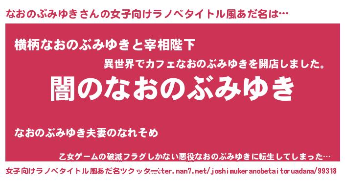 | 男性向けラノベタイトル風あだ名 | 『Re:なおのぶみゆきから始める異世界生活』 |