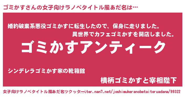 | 胡散臭い通販商品みたいなあだ名 | 『テレビで話題のアガリクス…その名も「ゴミかす」』 |