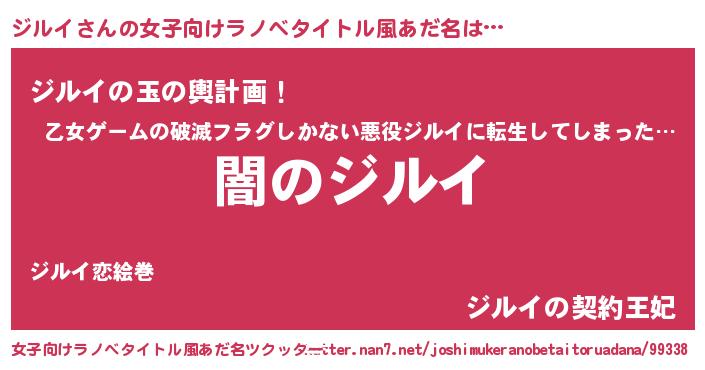 | 男性向けラノベタイトル風あだ名 | 『Re:ジルイから始める異世界生活』 |