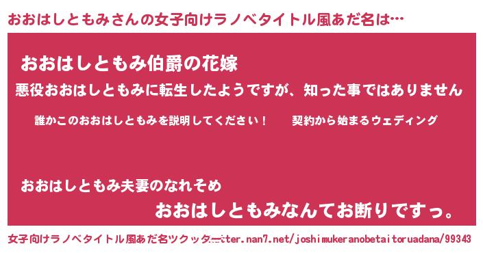 | 男性向けラノベタイトル風あだ名 | 『オオハシトモミアートオンライン』 |