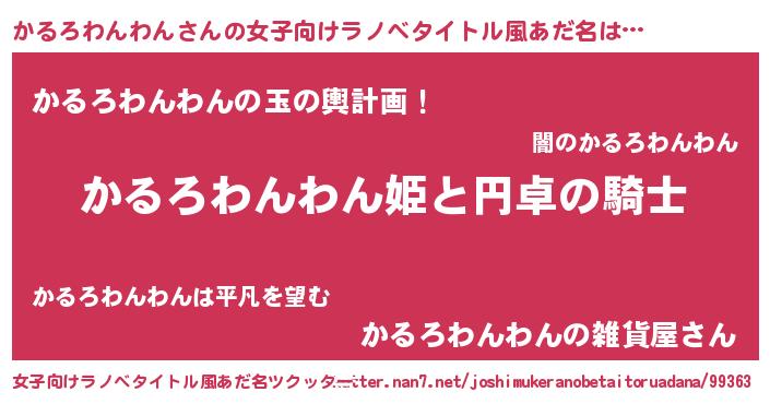 | 胡散臭い通販商品みたいなあだ名 | 『モテモテ間違いなし霊験あらたかなお札…その名も「かるろわんわん」』 |