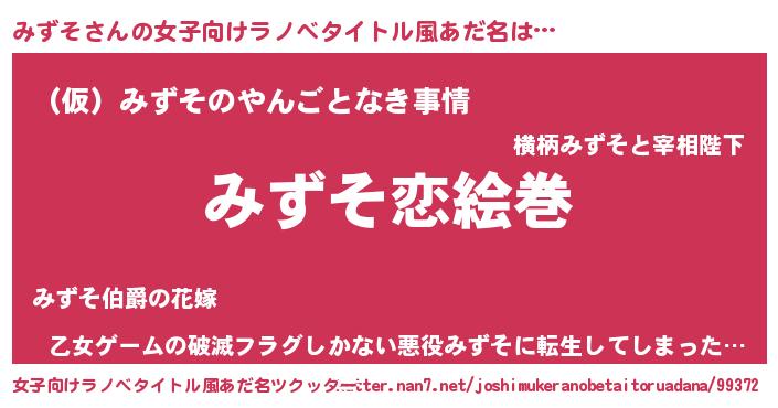 | 意味不明あだ名 | 『眠気覚ましガムみずそ味』『自称みずそ』 |