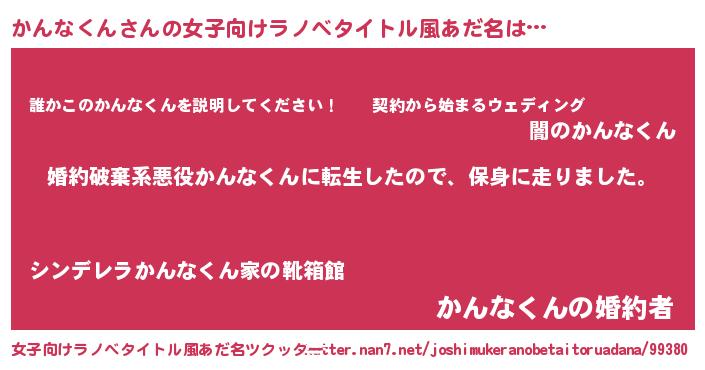 | 男性向けラノベタイトル風あだ名 | 『カンナクンスレイヤー』 |