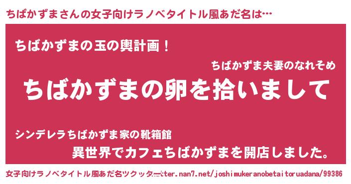 | 男性向けラノベタイトル風あだ名 | 『ダンジョンにちばかずまを求めるのは間違っているだろうか』 |