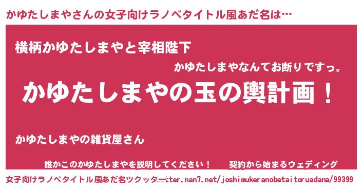 | ヘコむあだ名 | 『かゆもー』『なまこ酢』『かゆ太郎』 |