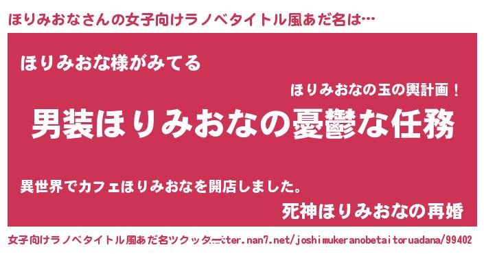 | 胡散臭い通販商品みたいなあだ名 | 『伝統あるサプリメント…その名も「ほりみおな」』 |