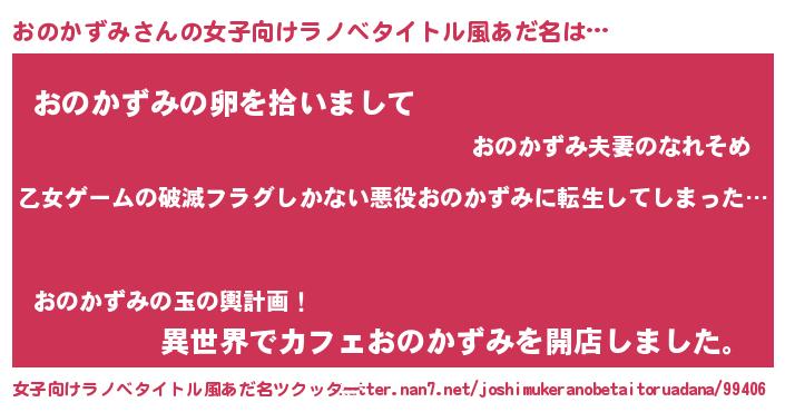 | 男性向けラノベタイトル風あだ名 | 『この素晴らしい世界におのかずみを!』 |