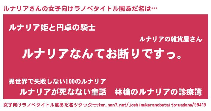 | 恥ずかしいあだ名 | 『ルナリアデラックス』『ルナっちょ』 |
