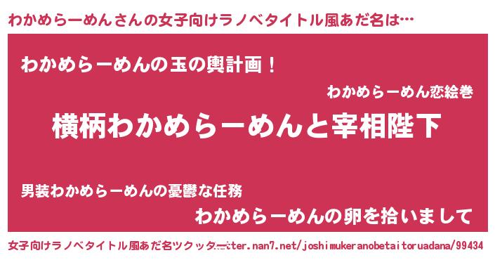 | 胡散臭い通販商品みたいなあだ名 | 『伝統あるサプリメント…その名も「わかめらーめん」』 |