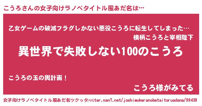 | 男性向けラノベタイトル風あだ名 | 『こうろという概念が存在しない退屈な世界 』 |
