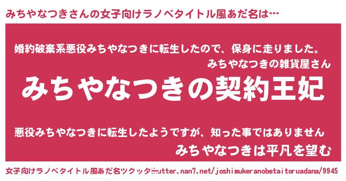 | ファンタジー風あだ名 | 『ミチディッシュ』『ユリミチヴァット』 |