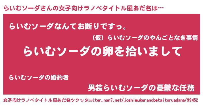 | 胡散臭い通販商品みたいなあだ名 | 『伝統あるサプリメント…その名も「らいむソーダ」』 |