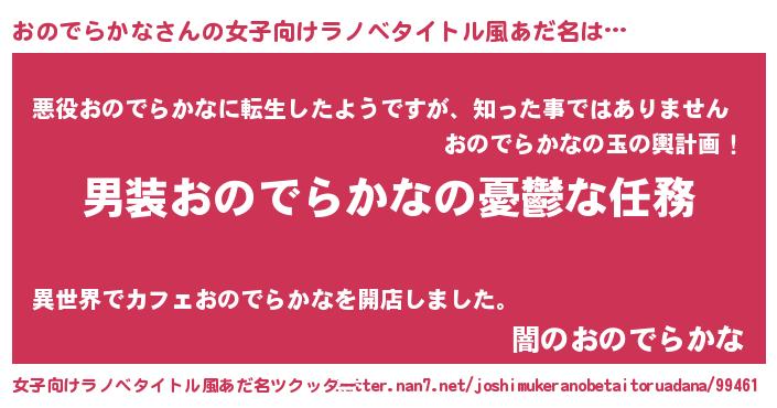 | 胡散臭い通販商品みたいなあだ名 | 『あなたにだけ特別に提供する限定10本のレアな日本酒…その名も「おのでらかな」』 |