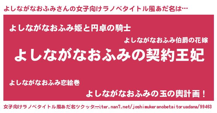 | 意味不明あだ名 | 『永久保存よしながなおふみ』 |