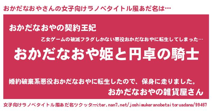 | 胡散臭い通販商品みたいなあだ名 | 『モテモテ間違いなし霊験あらたかなお札…その名も「おかだなおや」』 |
