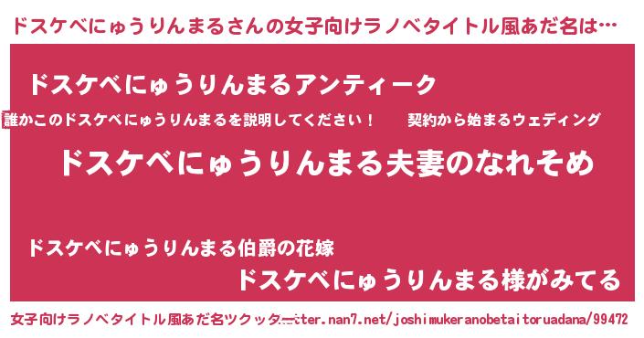 | 男性向けラノベタイトル風あだ名 | 『おまえをオタクにしてやるから、俺をドスケベにゅうりんまるにしてくれ! 』 |