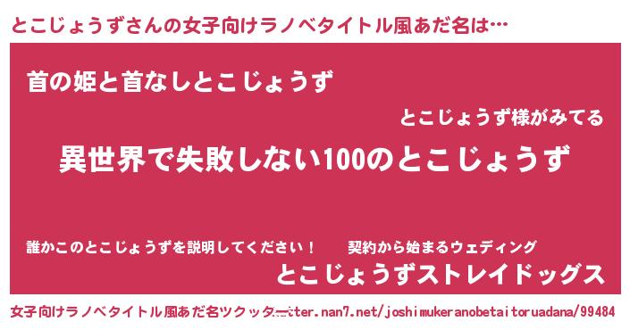 | 胡散臭い通販商品みたいなあだ名 | 『絶対に幸福をもたらす健康食品…その名も「とこじょうず」』 |