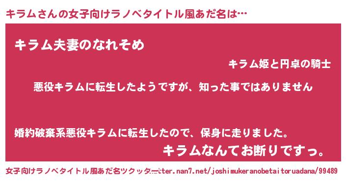 | 意味不明あだ名 | 『住所不定無職キラム(47歳)』『自称キラム』 |