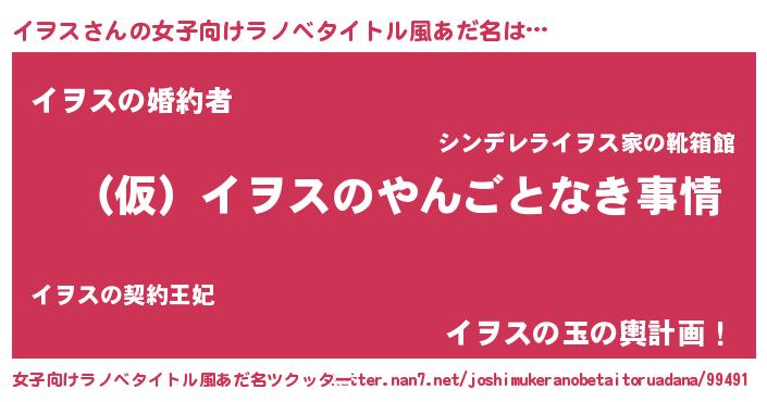 | ファンタジー風あだ名 | 『イヲフェル』『エターナルイヲスー』 |