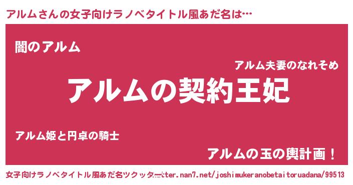 | 胡散臭い通販商品みたいなあだ名 | 『来世でも幸せになれる健康食品…その名も「アルム」』 |