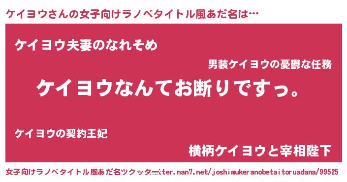 | 意味不明あだ名 | 『自称ケイヨウ』『永久保存ケイヨウ』 |