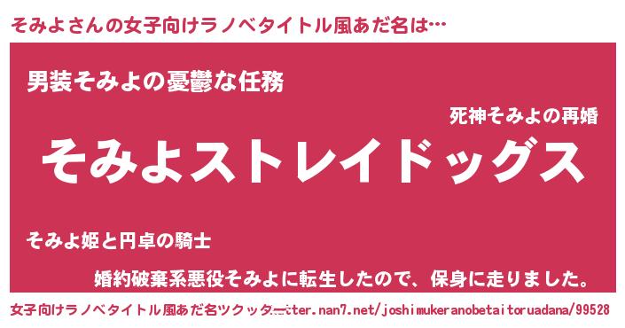| 男性向けラノベタイトル風あだ名 | 『Re:そみよから始める異世界生活』 |